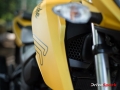 Once you turn on the key, you're welcomed by a fully digital meter that reminds you to gear up. The engine start button fires up the engine to a very grunty exhaust tone, that hints at the motorcycle's performance.