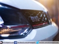 The front grille is a lot smaller and has a single red line running across its length. The headlight is also much more angular. The front bumper is more sculpted as well.