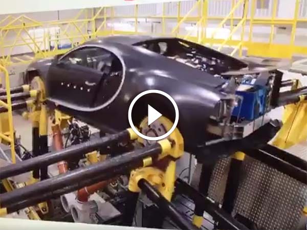 Bugatti tests its cars to its limits to make sure the hypercars can handle the big power and tough race tracks. Watch the video of intense test rigs in the Bugatti factory.