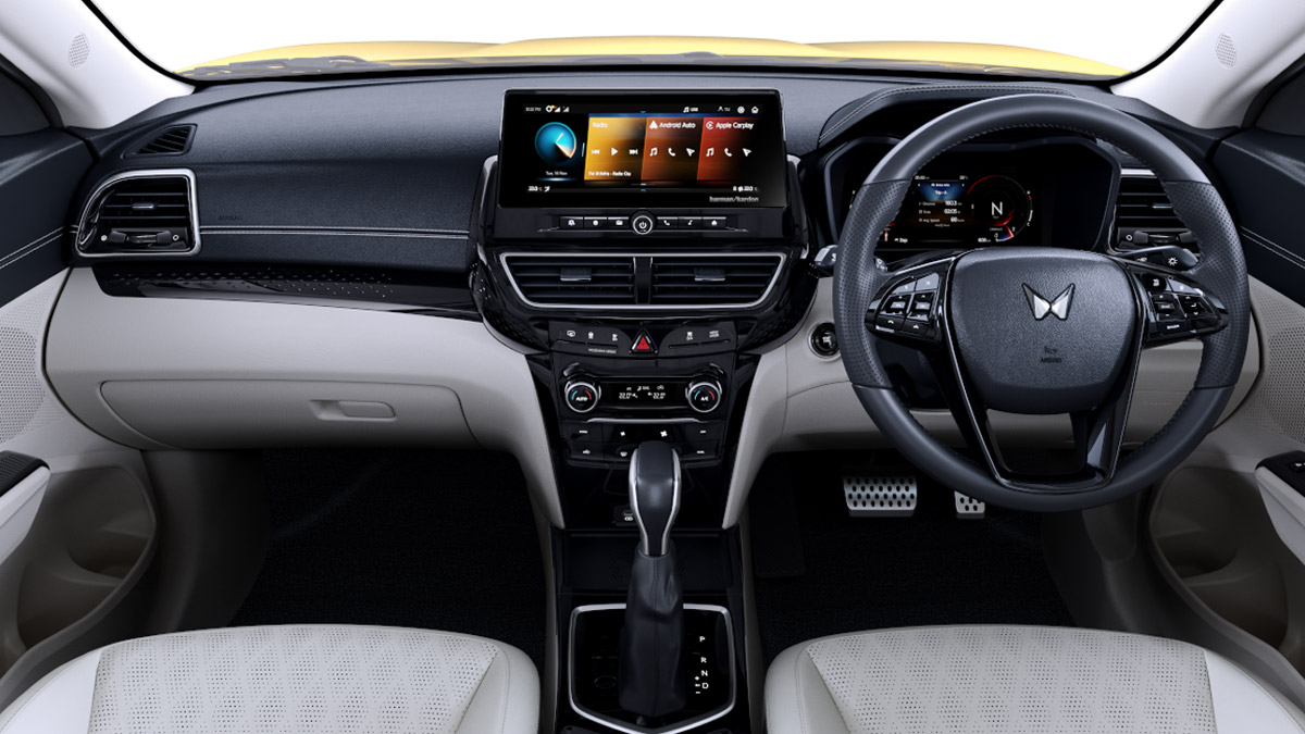 The Mahindra XUV 3OO comes equipped with a 10.25-inch touchscreen infotainment system and driver display. It also supports wireless Android Auto and Apple CarPlay. Additional features include a wireless phone charger, panoramic sunroof, and a 7-speaker Harman Kardon sound system.
