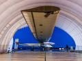 The Solar Impulse 2 completely uses the solar energy to drive its engine with a wingspan of 236 feet, which is slightly less than Airbus A380 - the current largest passenger aircraft. It cruises at an altitude of 39,000 feet.