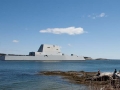 The new Stealth destroyer carries a whole array of weapons including 80 Tomahawk, Sea Sparrow and Standard missiles along with anti-submarine rockets.